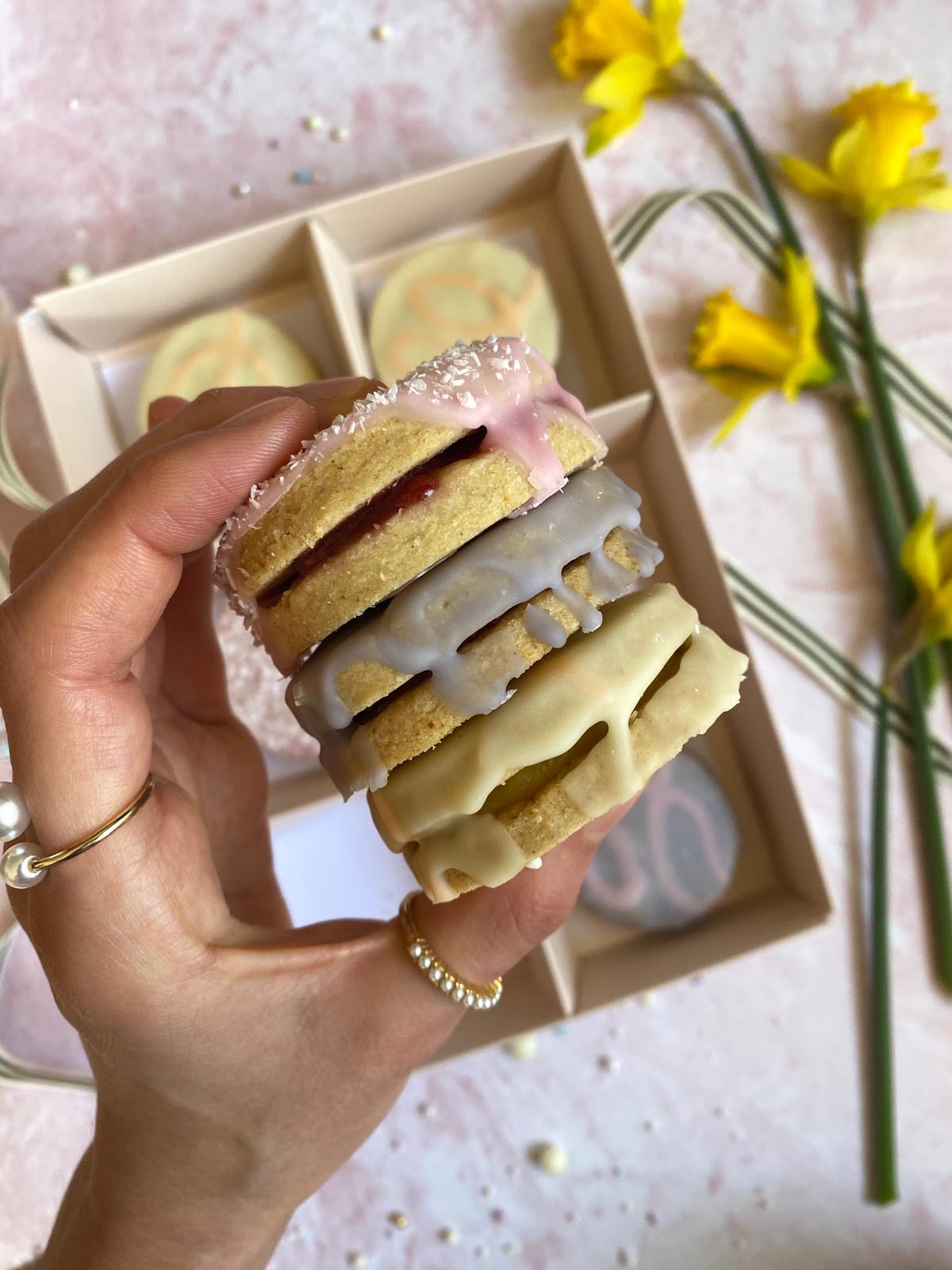 Meet Dodo’s, inspired by Napoliten, a Mauritian biscuit I grew up baking & gobbling! Traditionally made from two buttery, biscuit discs sandwiched with jam and dunked in a simple pink, glace icing.