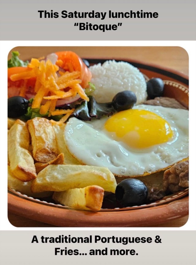 From tomorrow onwards Saturdays and Sundays lunchtime we are having more options including the Portuguese Bitoque which is Steak and Fries and Charcuterie Boards – no booking is required.