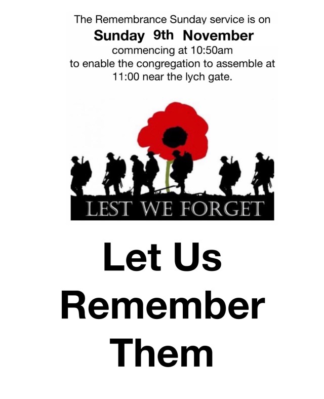 This year’s Remembrance Sunday service will be held at St Mary’s Church on Sunday 9th November at 10:50am
