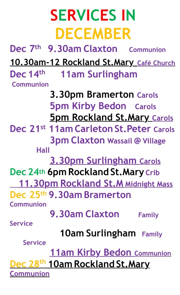 • Christmas carol service 21/12/2025 at 15:30 – 17:00 St Mary's Churchn1 Church Cottages, Church Lane, Surlingham, Norwich, NR14 7DF, England