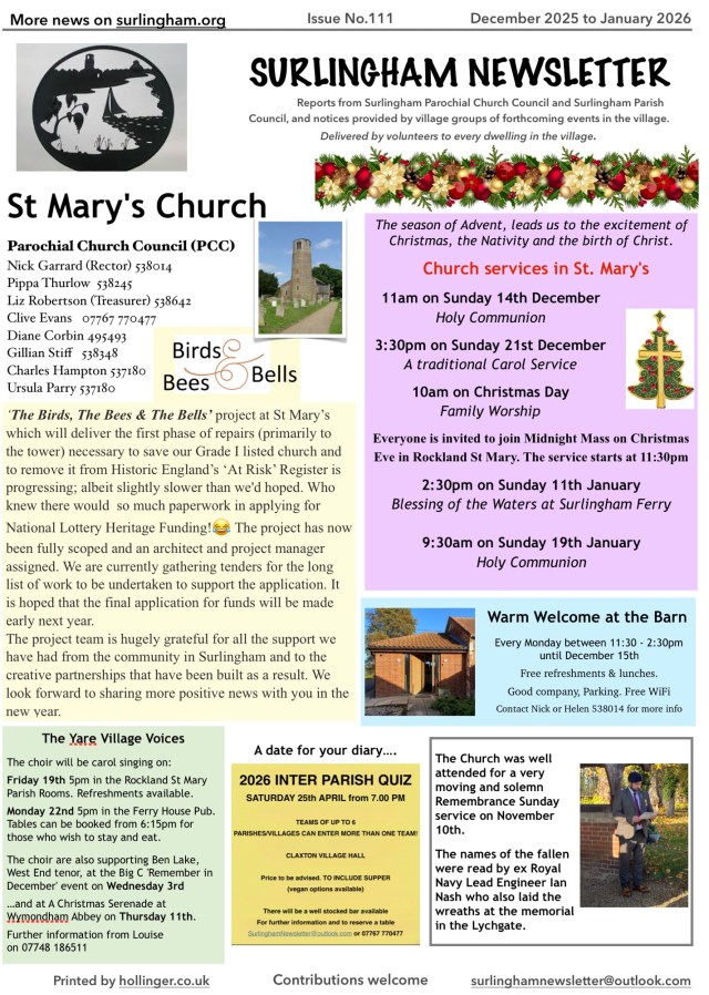 Please see attached for the latest edition of the Surlingham Newsletter.