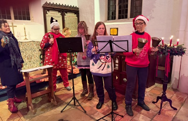 A full church for the Carol Service on Sunday, rounded off by Surlingham handbells.