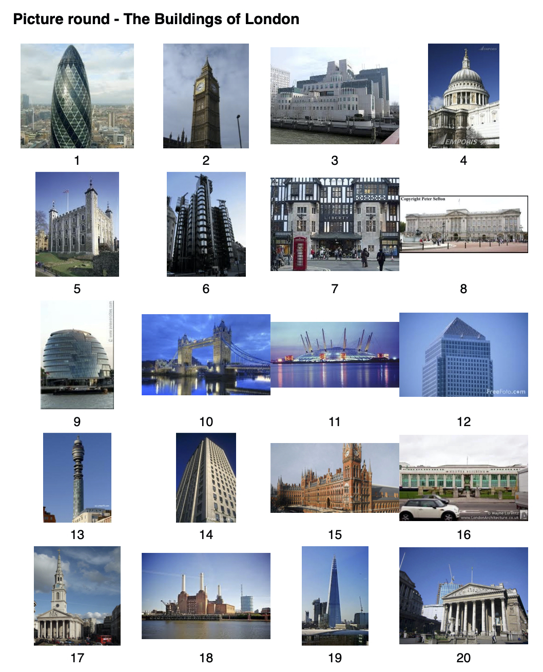 Picture Quiz Buildings of London