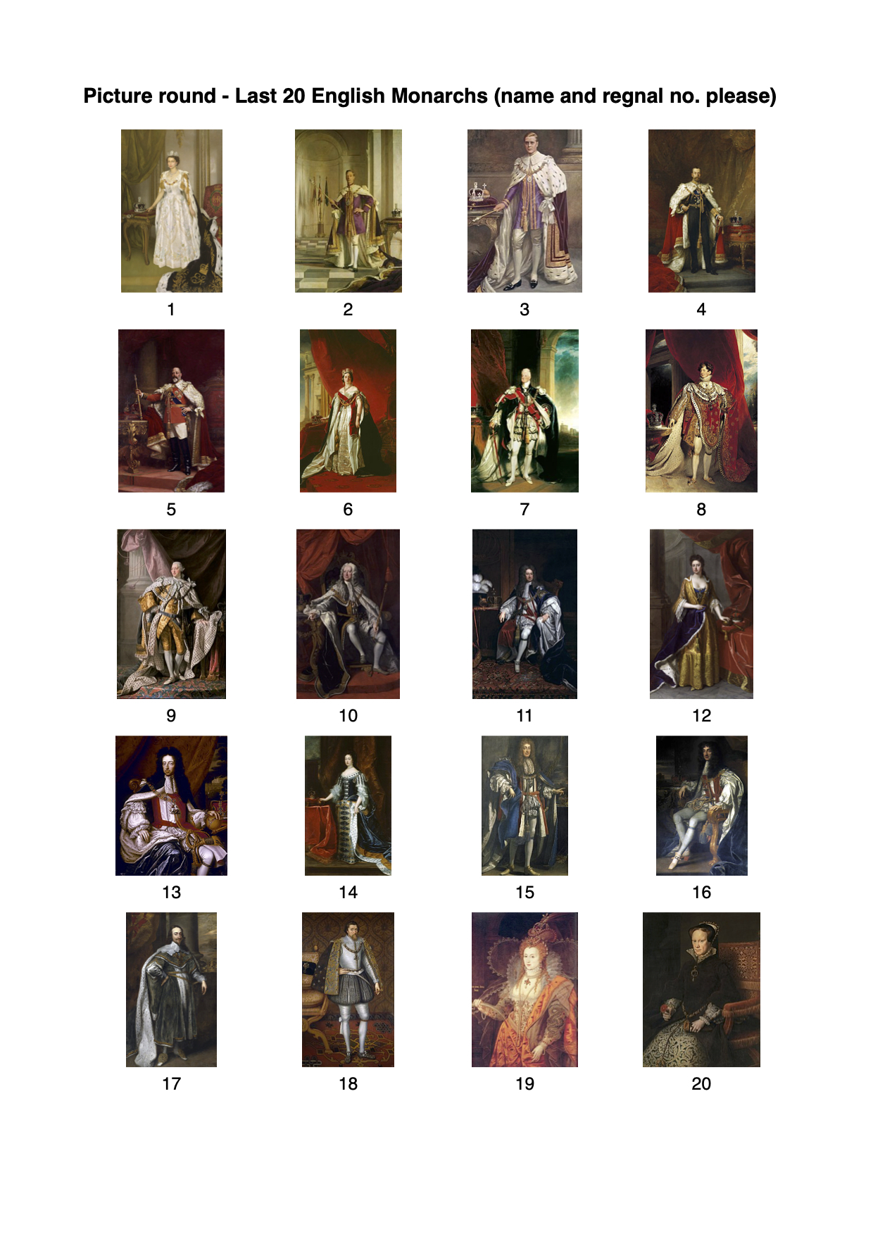 Picture Quiz last 20 monarchs